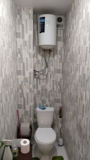 Санузел раздельный, на ванную подключен стационарный водонагреватель, которого хватает, чтобы полноценно помыться в летнее время, если идут плановые работы по горячему водоснабжению.
