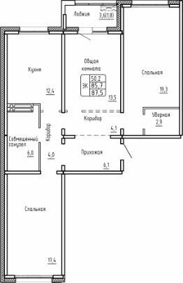 Общая площадь87,5 м²