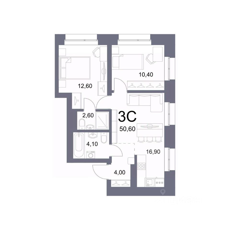 Общая площадь50,6 м²