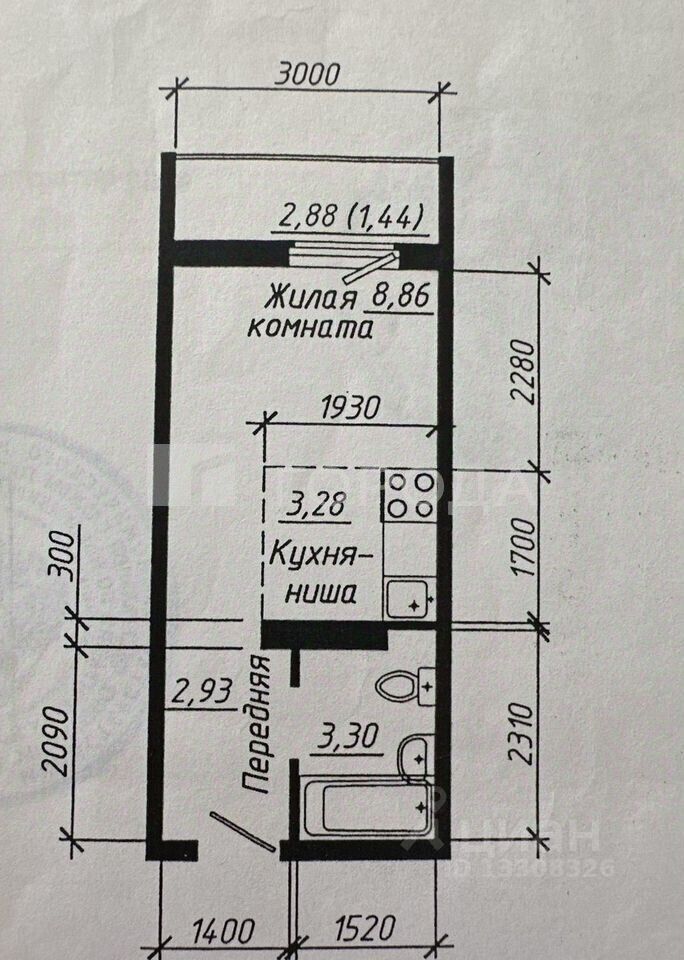 Площадь: 20 кв. м (жилая — 10 кв. м, кухня — 3 кв. м)