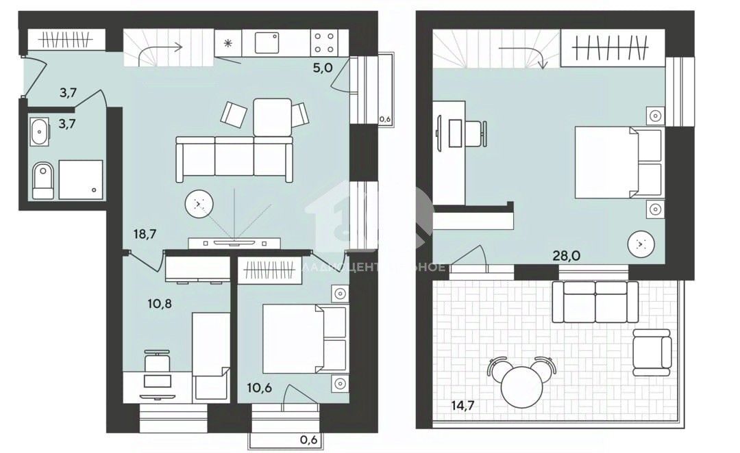 1 лоджия, 2 балкона