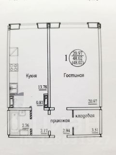 Продается однокомнатная квартира в современном доме 2020 года постройки. Общая площадь квартиры составляет 48,1 кв. м, из которых 21 кв. м отведено под жилую зону, а просторная кухня занимает 16 кв. м. Прихожая оборудована вместительной Гардеpoбной 3.5 м, а санузел солидного размера.