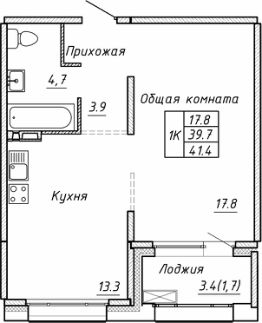 41,4 м²