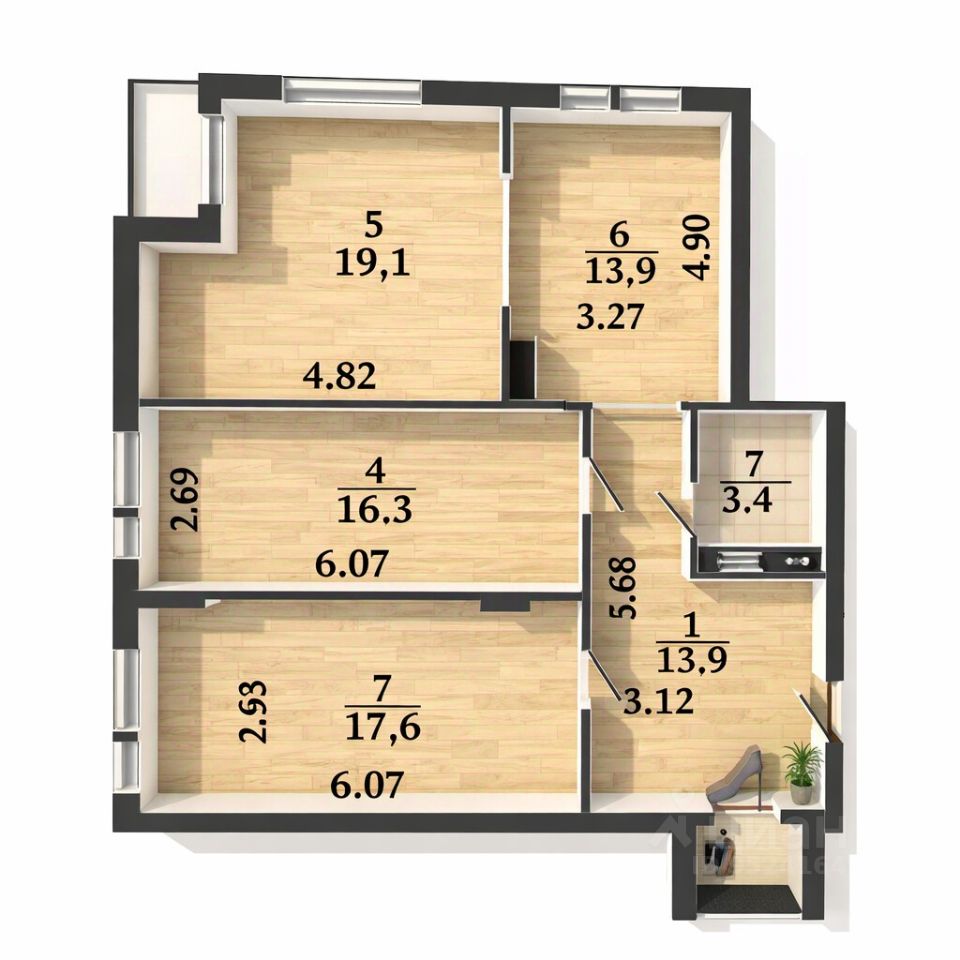 Уникальное расположение окон. Комнаты правильной формы — нет "узких коридоров", где не развернуться. Каждый метр работает на вас.