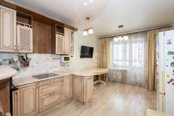 — На полу ламинат, натяжные потолки