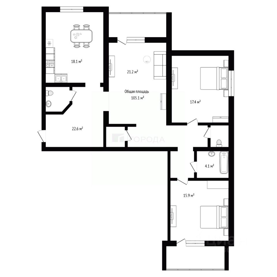 2 спальни,