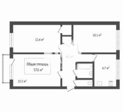 Общая площадь квартиры 57 м². Это идеальное пространство для семьи или пары, ценящих комфорт и уют.
