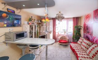 Пространство и свет: Квартира как 2-ка Студия придется ПО ДУШЕ не только хозяйке, но и всем домочадцам. В квартире сделан качественный ремонт , на полу линолеум, натяжные потолки со встроенными светильниками,на стенах обои, в сан.узле кафель с современной сан.техникой, на полу керамо-гранит. Бонусом остается мебель: Кухонный гарнитур, барная стойка со стульями, диван, мягкое кресло, стенка, кровать, в коридоре шкаф для одежды. Окна пластиковые во двор тихо и спокойно. Лоджия остеклена . Всегда есть парковочное место для машины. Детская площадка и сквер для прогулки.