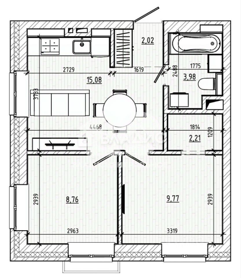 Планировка позволяет сделать две полноценные комнаты и кухню-гостиную, обратите внимание на предложенный план квартиры.