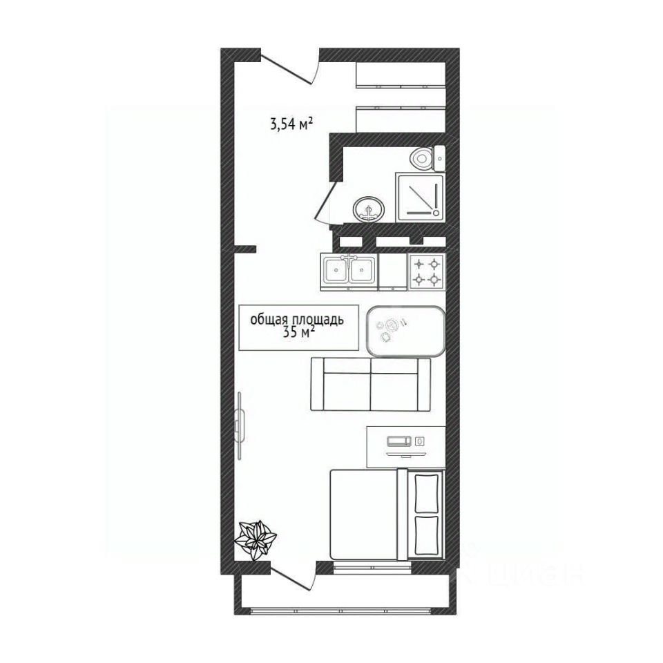 Предлагается просторная студия общей 35кв. м. и жилой площадью 19 кв.м. с удобной планировкой, включающей вместительный коридор 8 кв.м. и застекленную, отделанную лоджию 4 кв.м. Квартира подготовлена под чистовую отделку, что позволит вам воплотить любые дизайнерские решения и создать интерьер своей мечты.