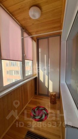 Большая и утепленная лоджия со встроенным шкафом.