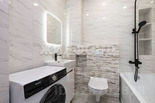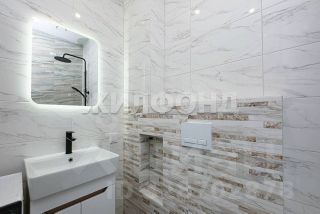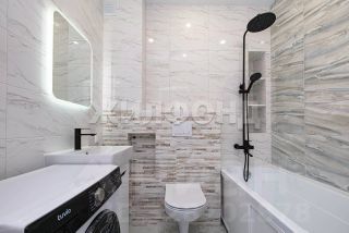 Санузел совмещенный: выполнен качественный ремонт в светлых тонах, пол с подогревом, установлена инсталляция.