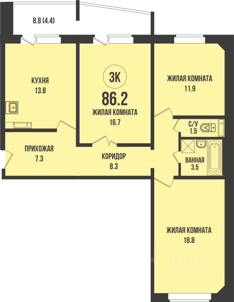 Продаётся 3-комнатная квартира в строящемся доме (Дом 911), срок сдачи: IV-кв. 2027, общей площадью 86.2 кв.м., на 3 этаже. Квартал поколений "Династия" - это проект, который давно ждали. Именно здесь, в 10 минутах езды до площади Калинина, на территории двух районов Новосибирска - Калининского и Заельцовского - расположился комплекс, где воплощается в жизнь накопленный за 30 лет существования компании градостроительный опыт. Это 16 домов в двух минутах ходьбы от Красного проспекта с закрытой территорией, с большим количеством зелени и собственной парковой зоной.