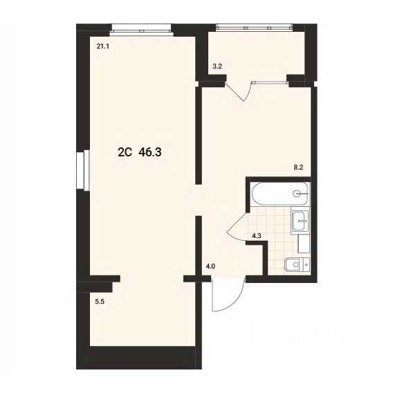 Общая площадь46,3 м²