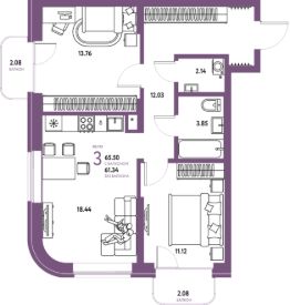 Продаётся 3-комнатная квартира в строящемся доме (Дом 1), срок сдачи: IV-кв. 2026, общей площадью 65.5 кв.м., на 5 этаже. Квартал "Страна.Береговая" - новый проект компании "Страна Девелопмент", расположенный в Заельцовском районе Новосибирска по адресу: ул. 2-я Сухарная, 109/2.