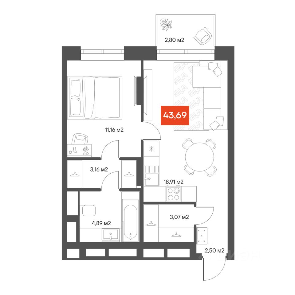 Общая площадь42,6 м²