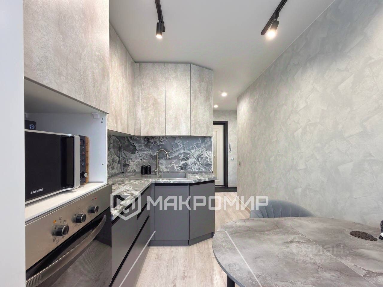+ Стильный современный кухонный гарнитур делает компактную кухню функциональной и продуманной.