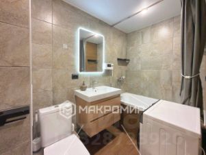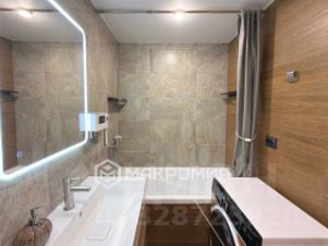 + Совмещенный санузел с современным ремонтом: фактуры бетона и дерева, подвесная тумба, зеркало с подсветкой