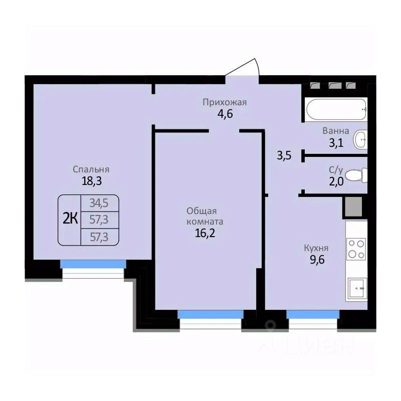 57,3 м²