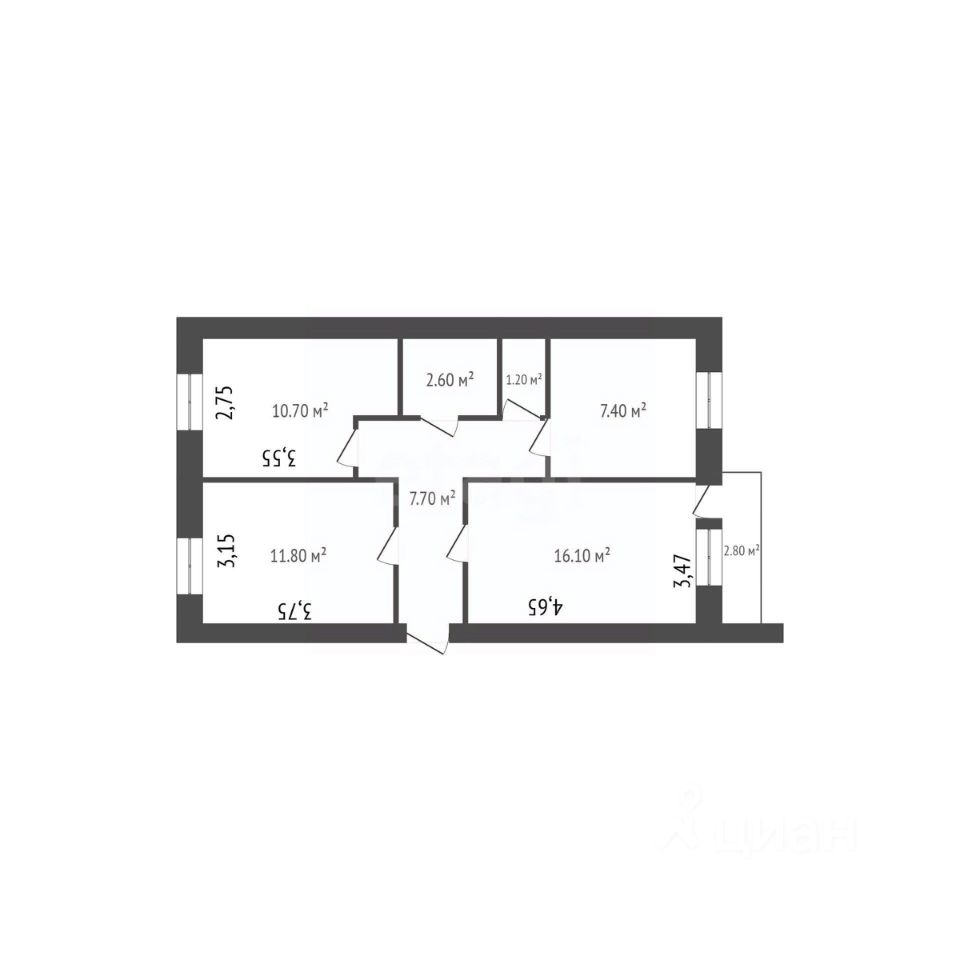 Сразу при входе — прихожая, дальше комнаты расположены так, что никто никому не мешает: две по 11 м² и одна 16 м² с выходом на остеклённый балкон. Кухня 7,5 м², раздельный санузел (ванна 2,6 м² и туалет 1,2 м²). Окна на две стороны — квартира хорошо проветривается и всегда светлая.
