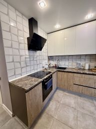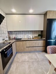 В квартире сделан качественный ремонт, натяжные потолки, пол ламинат, на кухне и в ванной комнате керамогранит.