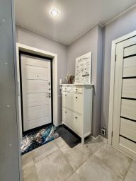 Входная дверь от застройщика заменена на более надежную, со звукоизоляцией. Прихожая остается покупателю, так как подбиралась индивидуально к этой квартире.
