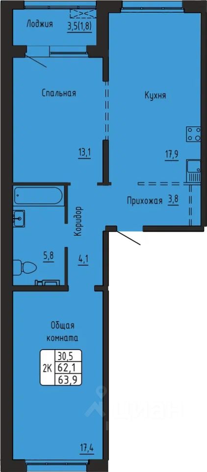63,9 м²