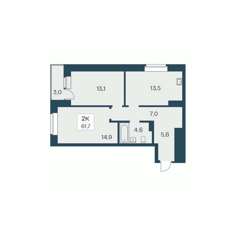 Продаётся 2-комнатная квартира в строящемся доме (Дом 5), срок сдачи: II-кв. 2026, общей площадью 61.7 кв.м., на 13 этаже.