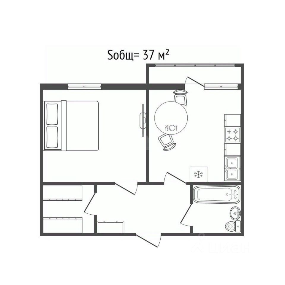 Общая площадь 37 кв.м.
