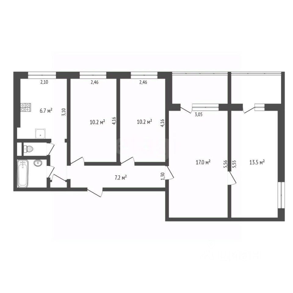 • Две застеклённые лоджии по 3 м²