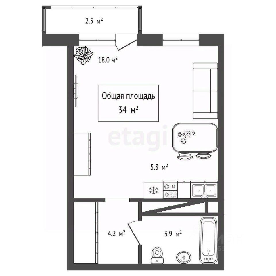 Предлагаю к продаже квартиру студию 34 квадрата с 2 окнами