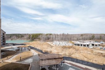 6-8-этажные дома каскадом спускаются к озеру, благодаря чему из окон большинства квартир можно любоваться волшебной панорамой противоположного лесного берега.
