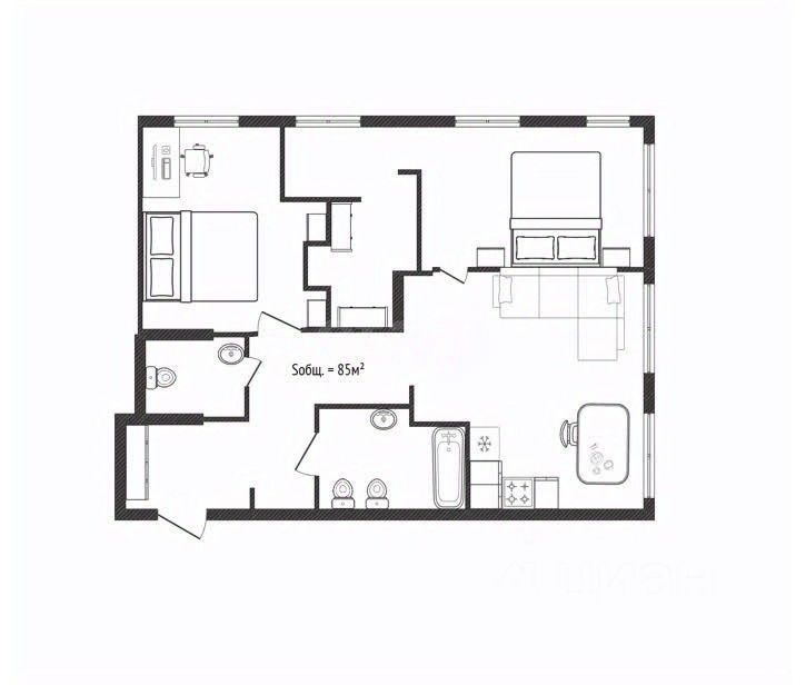 Планировка и пространство (85 м², 10 этаж, потолки 2,9 м)