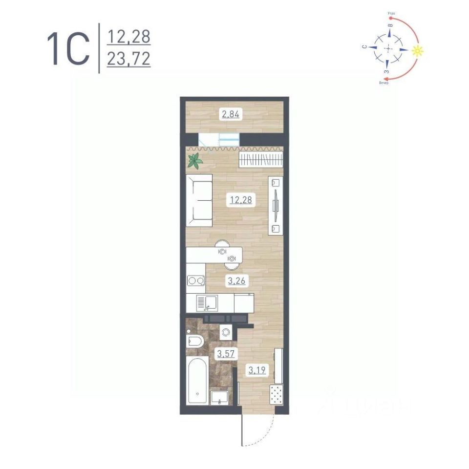 Продаётся студия в сданном доме (Забалуева, 69/2 (Дом 11)), срок сдачи: IV-кв. 2025, общей площадью 23.72 кв.м., на 14 этаже. Расположение, транспортная доступность