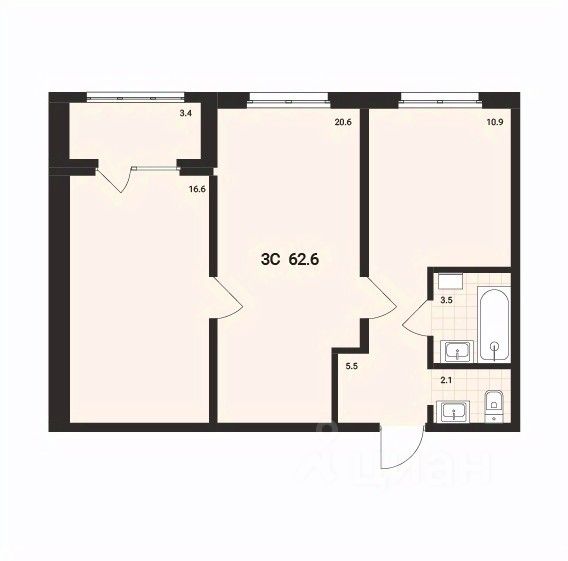 Общая площадь62,6 м²