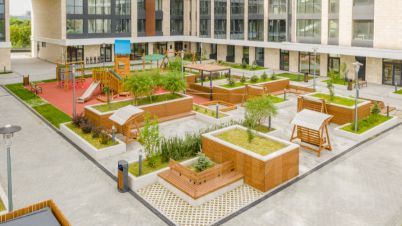 Большое внимание уделяется безопасности комплекса: двор без машин, многоуровневая система видеонаблюдения, пост охраны.