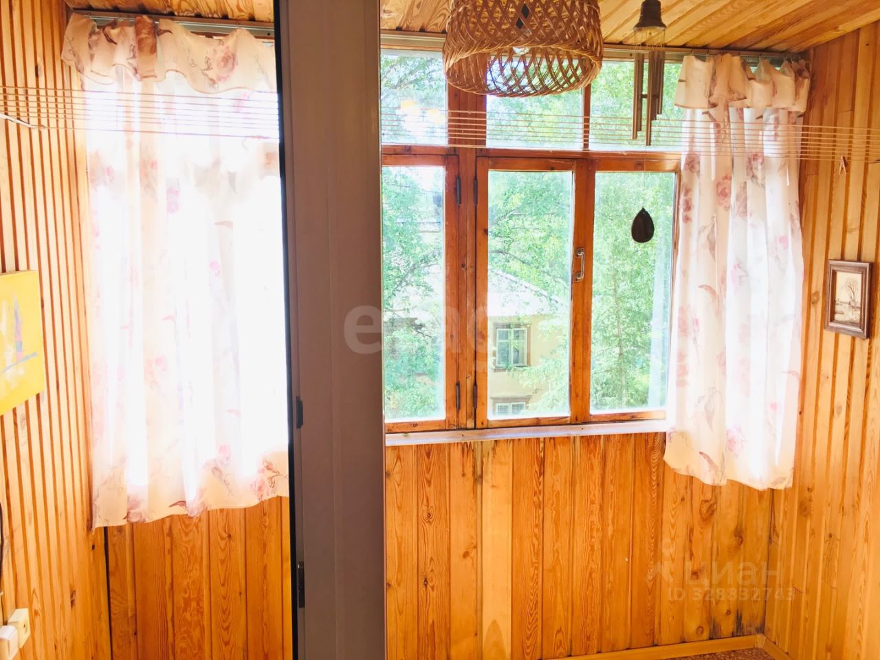 пластиковые окна, большая застеклённая лоджия обитая деревом.