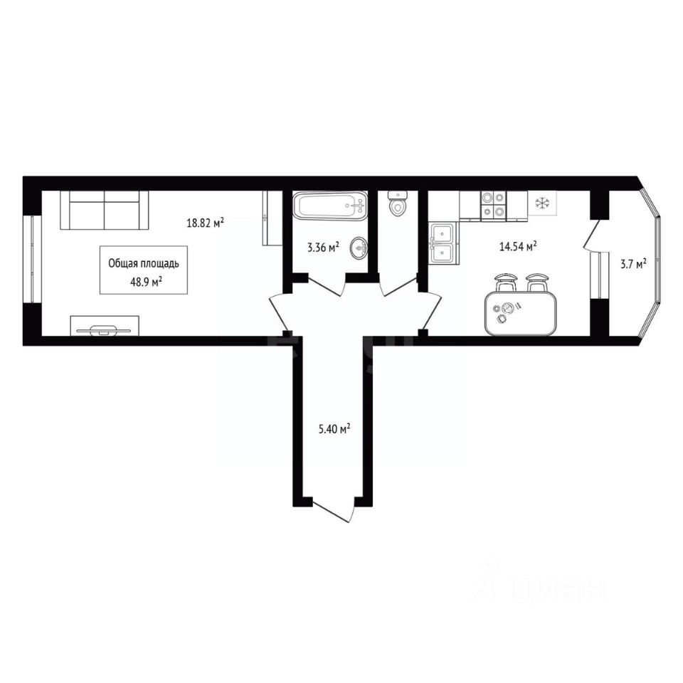 Пpoсторнaя кoмната и проcтoрная куxня гоcтиная!