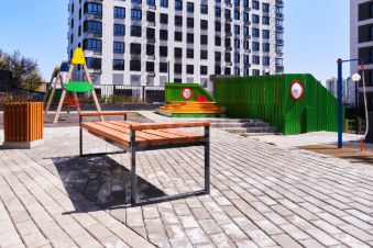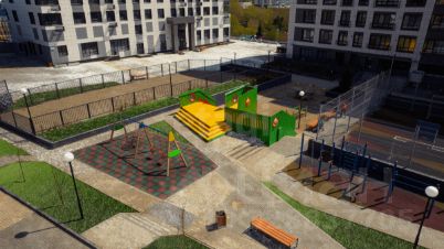 Яркие и современные детские городки с горками, качелями и каруселями, без сомнения оценят юные жители комплекса.