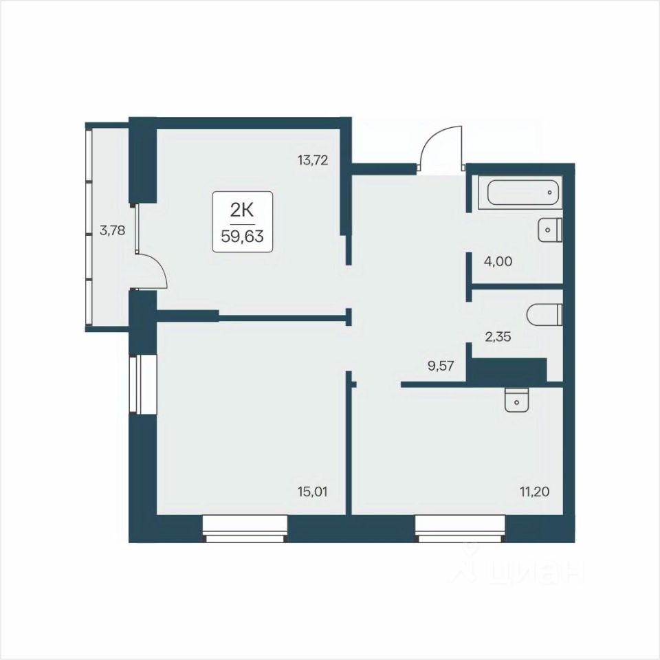 59,63 м²