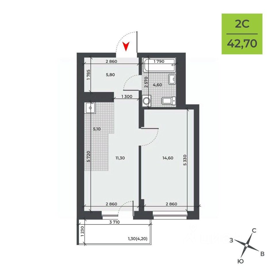 42,7 м²