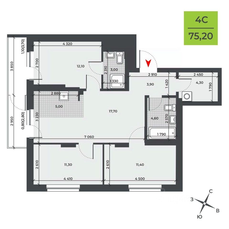 Общая площадь75,2 м²