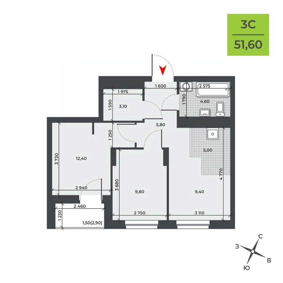 Продаётся 3-комнатная квартира в строящемся доме (Дом 1), срок сдачи: IV-кв. 2027, общей площадью 51.6 кв.м., на 14 этаже. Новый жилой комплекс "ДНК" от Специализированного застройщика "Снегири" расположен в Калининском районе Новосибирска на ул. Курчатова.