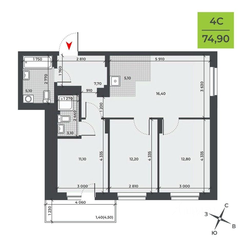 Продаётся 4-комнатная квартира в строящемся доме (Дом 1), срок сдачи: IV-кв. 2027, общей площадью 74.9 кв.м., на 2 этаже. Новый жилой комплекс "ДНК" от Специализированного застройщика "Снегири" расположен в Калининском районе Новосибирска на ул. Курчатова.