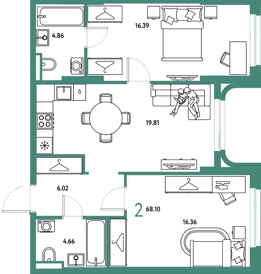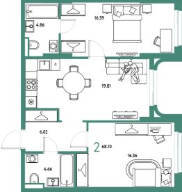 Продаётся 2-комнатная квартира в строящемся доме (Дом 1), срок сдачи: IV-кв. 2027, общей площадью 68.1 кв.м., на 12 этаже. "Страна. Тополёвая" - органично вписанный в городскую среду дом-квартал переменной этажности с акцентной башней доминантой. Мы открываем новую главу истории города, создавая пространство, в котором комфортно жить, работать и строить счастливое будущее.