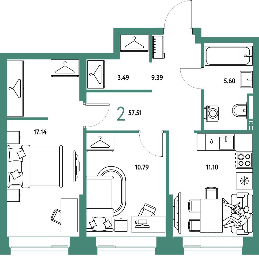Продаётся 2-комнатная квартира в строящемся доме (Дом 2), срок сдачи: IV-кв. 2027, общей площадью 57.51 кв.м., на 2 этаже. "Страна. Тополёвая" - органично вписанный в городскую среду дом-квартал переменной этажности с акцентной башней доминантой. Мы открываем новую главу истории города, создавая пространство, в котором комфортно жить, работать и строить счастливое будущее.