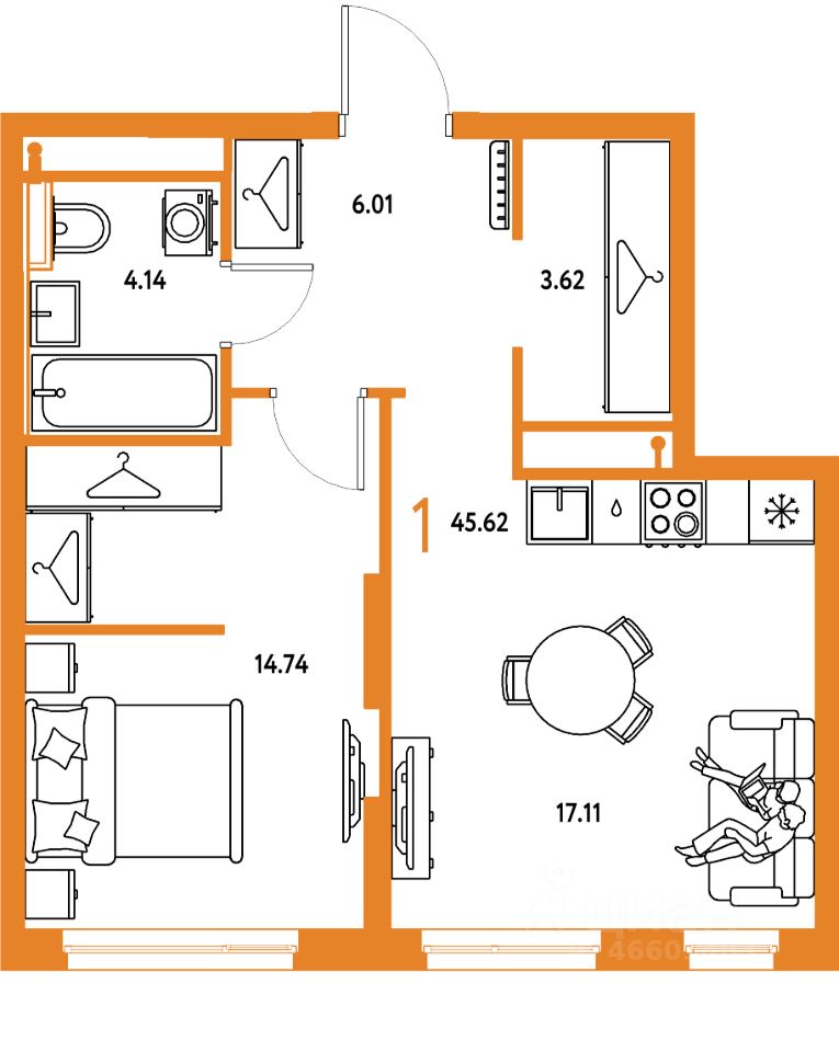 Продаётся 1-комнатная квартира в строящемся доме (Дом 2), срок сдачи: IV-кв. 2027, общей площадью 45.62 кв.м., на 5 этаже. "Страна. Тополёвая" - органично вписанный в городскую среду дом-квартал переменной этажности с акцентной башней доминантой. Мы открываем новую главу истории города, создавая пространство, в котором комфортно жить, работать и строить счастливое будущее.