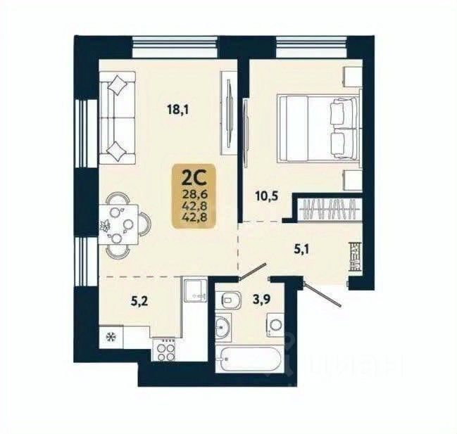 Цена ниже застройщика на 1 000 000 руб. Квартир с такой планировкой больше нет в продаже Солнечная сторона + парк + высокие потолки — редкое сочетание