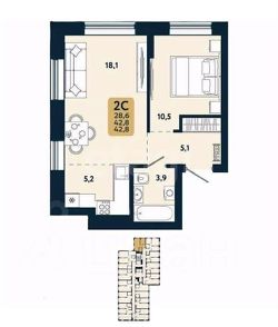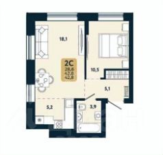 Площадь: Евро-2 (просторная кухня-гостиная)