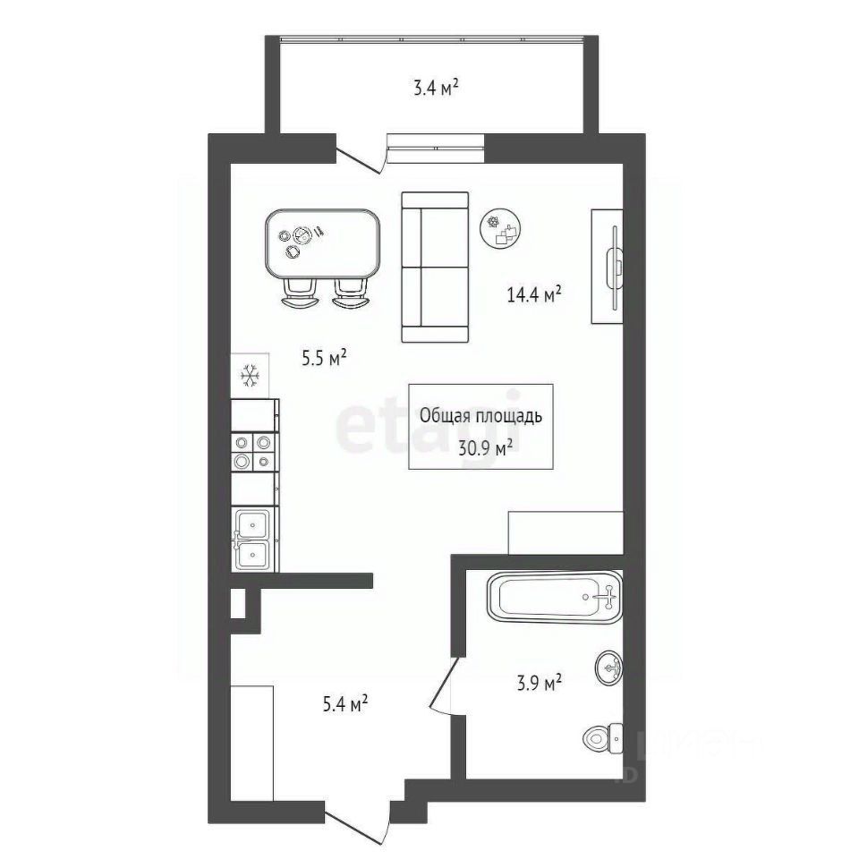 30,9 м²